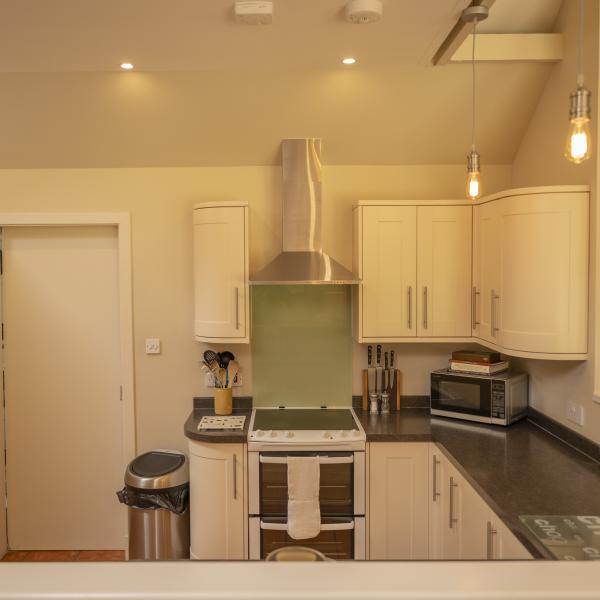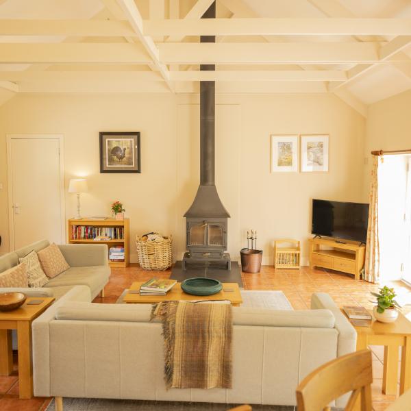 If your stay is about togetherness and soaking up your surroundings, you'll love the large living area in this relaxing hideaway. From its rustic white ceiling beams to the industrial-style lighting, Woodend Cottage has a vibe you won't want to leave.